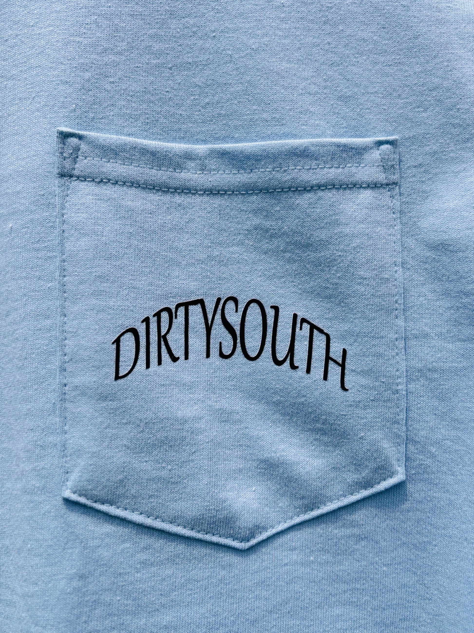 Dirty South Outdoors comfort colored short sleeve tee shirt with front pocket and back design.